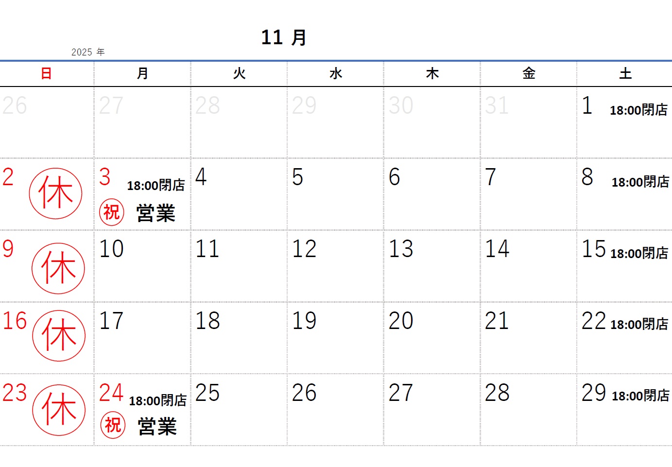 こだわりについて10月9日(月・祝)は臨時休業します。